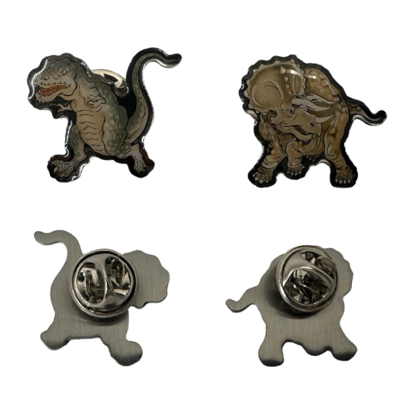恐竜大夜行 ピンズ(ティラノサウルス・トリケラトプス) サイズ:約23mm角 DINOALIVE限定の恐竜大夜行デザインのピンズ2個セットが登場! 是非、お気に入りの場所につけてください。 ※商品は、撮影機材やお客様の端末、環境の違いによって、現物との色合いが違う場合がございます。
